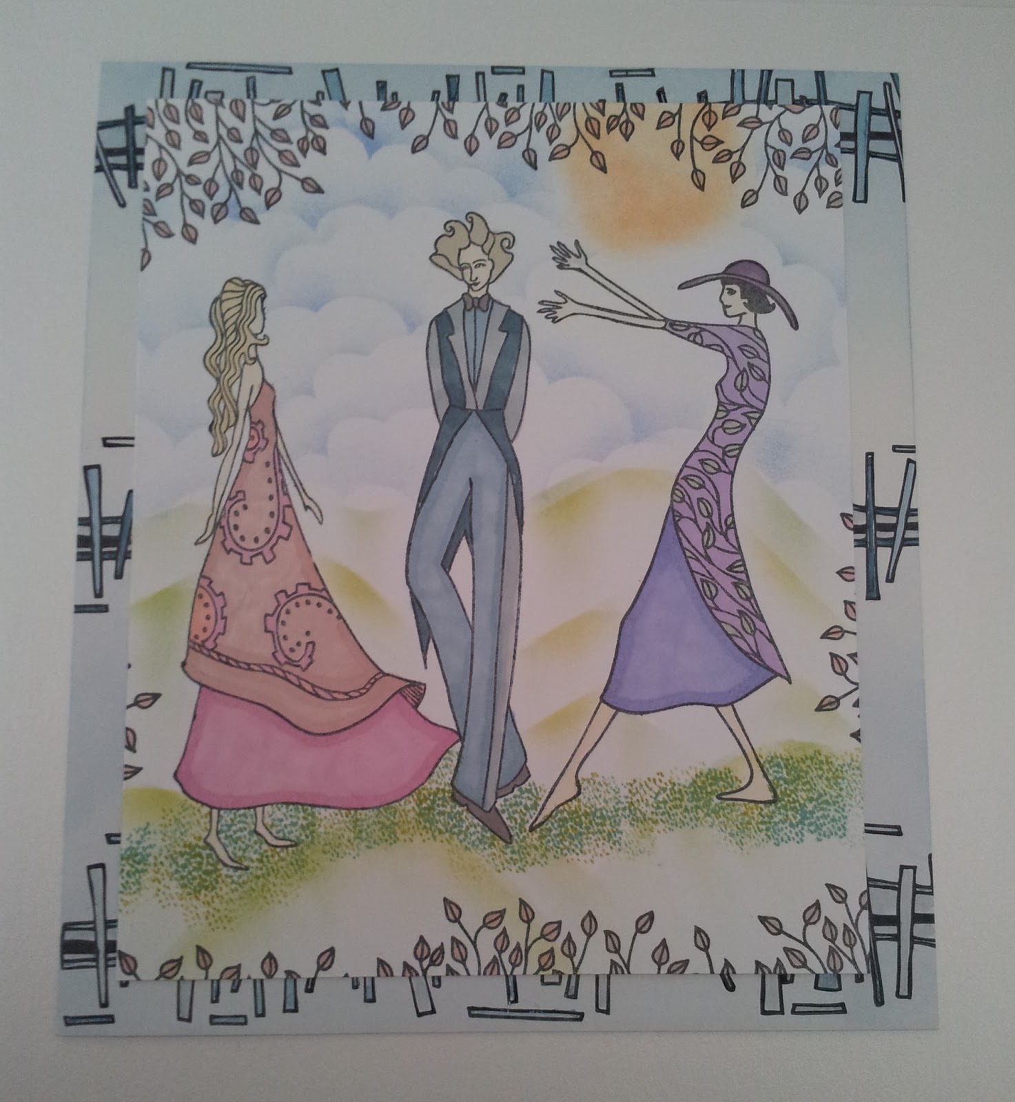 The backing paper is from a Pink Paislee pack called Spring Jubilee which came free with a Cardmaking and Papercraft magazine. I chose this paper because it has a birdcage and bird flying free. I stamped the edges with the cherry blossom stamp along with the music and bird stamp again and distressed the edges with broken china distress ink so that the whole thing had a unified feel. I also coloured the cherry blossom with a promarker to match the colour of the flowers on the background paper.